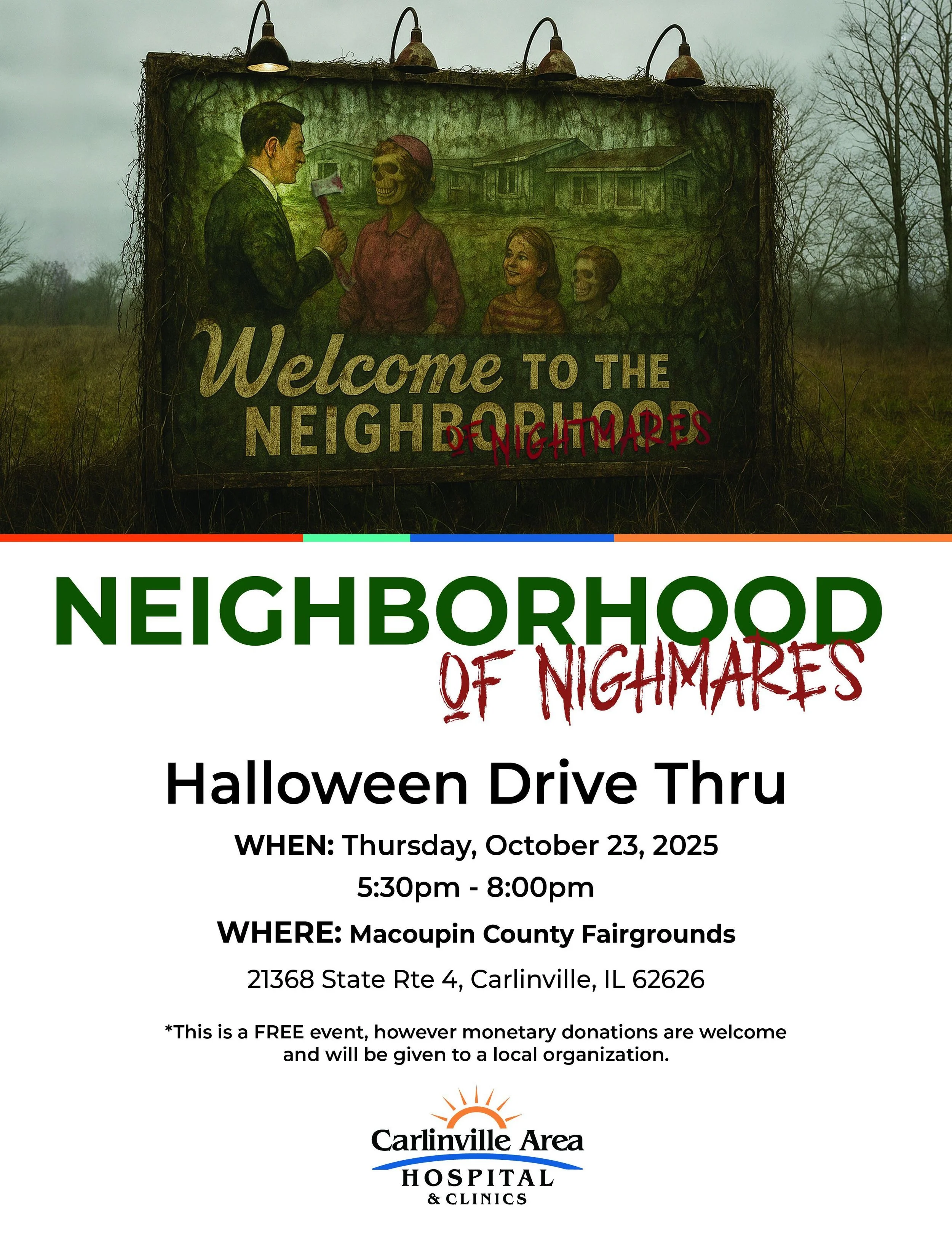 Don’t miss this year’s annual Haunted Drive Thru by Carlinville Area Hospital and Clinics at the Macoupin County Fairgrounds!!
