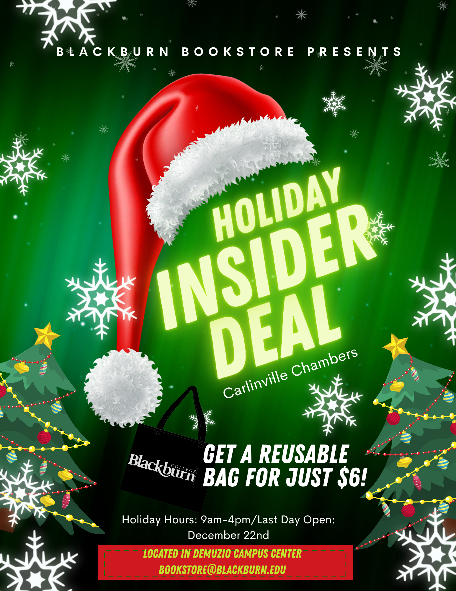 By joining the Holiday Insider program, members agree that the Carlinville Chamber of Commerce is not liable for any injury, accident, lost items, or other issues that occur at or around participating businesses.