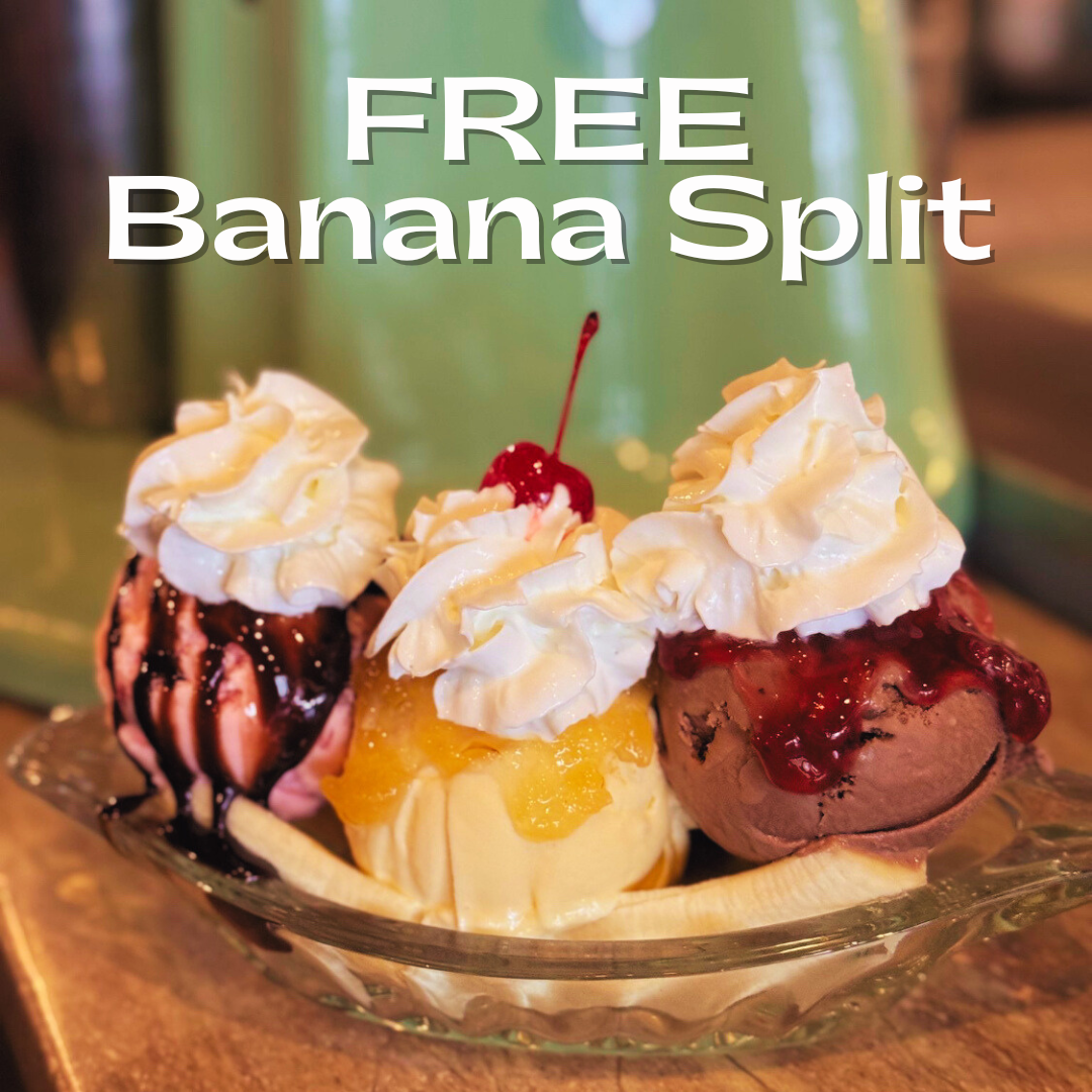 One FREE Banana Split with any $15.00 purchase. Valid for dine-in only. One per visit.